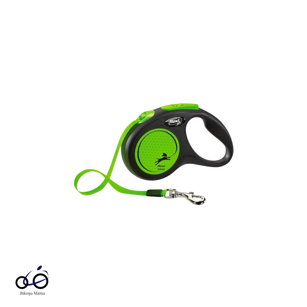 15 kg ağırlığa kadar olan köpekler için güvenle kullanılabilecek, parlak neon renkli şerit şeklinde otomatik köpek gezdirme kayışıdır.