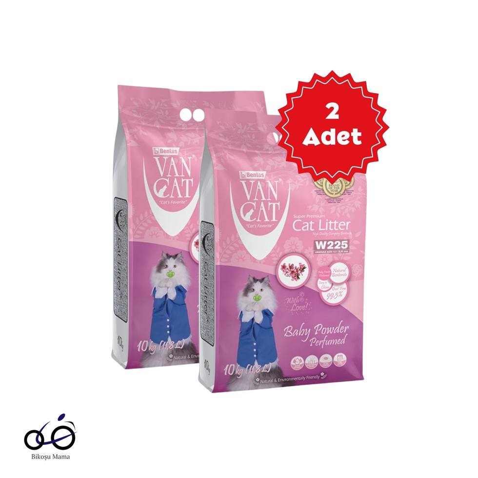 VanCat Bebek Pudrası Kokulu İnce Tane Kedi Kumu, hem kedinizin konforunu hem de evinizin hijyenini sağlamak amacıyla özenle üretilmiş, VanCat serisinin en çok tercih edilen kumu dur. Bu ekonomik pakette 2 adet 10 Litrelik (Toplam 20 L) kum bulunur. Kum, %100 doğal beyaz bentonitten üretilmiş olup, 0,5 – 2,25 mm aralığındaki ince taneyapısıyla kedilerin patisine hassas bir dokunuş sunar. En önemli özelliği, yüksek topaklanma gücü sayesinde oluşan topakların kartopu gibi yuvarlak ve sağlam olmasıdır. Ayrıca, hassas burunlar için ideal olan %99,5 tozsuzluk oranı ve ferahlatıcı bebek pudrası kokusu içerir.