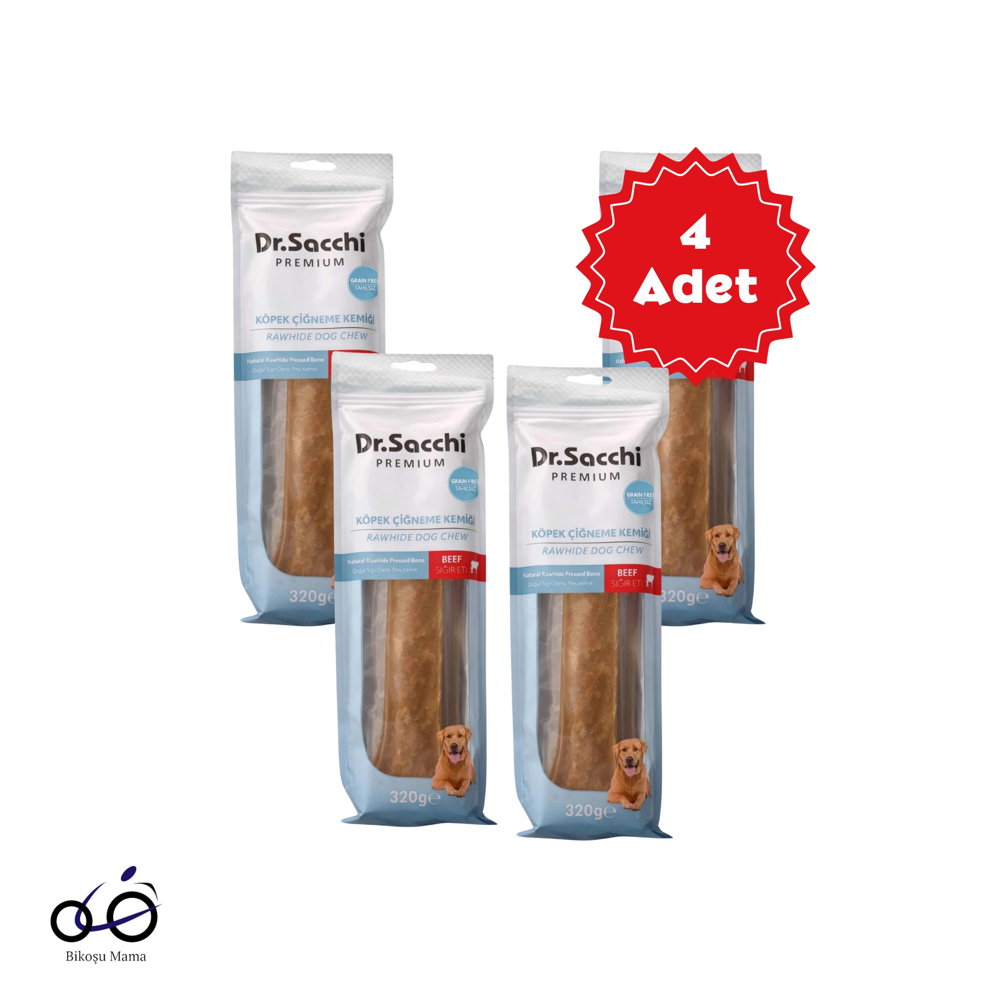 Dr. Sacchi Sığır Derisi Doğal Press Kemik Köpek Ödülü 320 g x 4 Adet